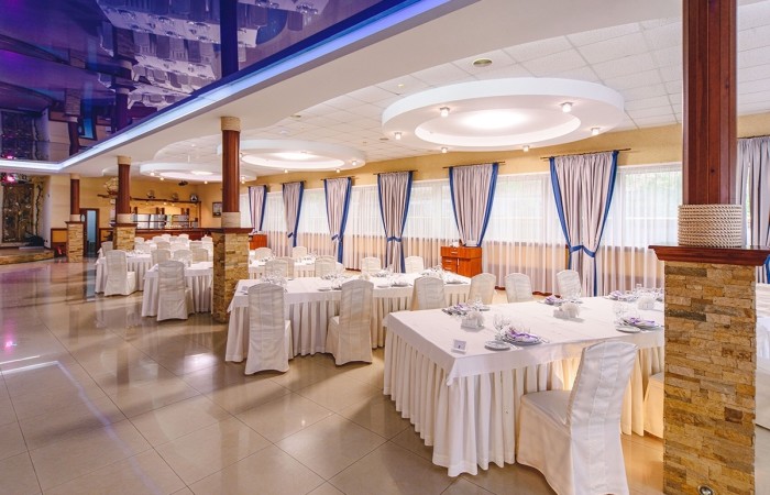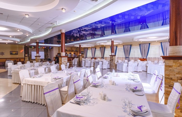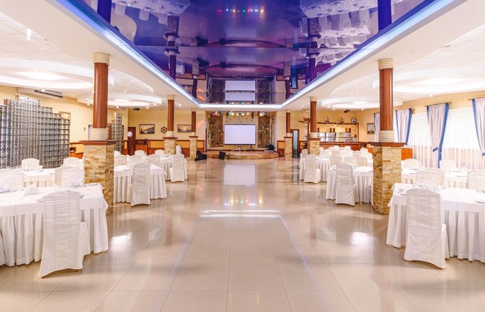 The "Perlina" restaurant in Odesa has 2 halls: a banquet hall- the main hall, for up to 200 guests, and a VIP- hall for up to 20 people.