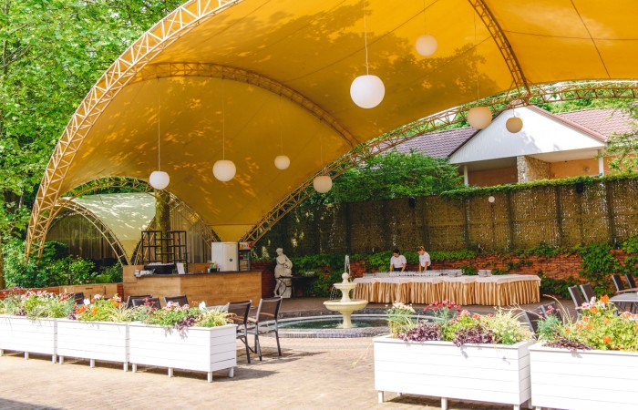 Открытая летняя площадка ресторана идеально подходит для мероприятий в летний период. Welcomedrinks, фуршеты, презентации, начало свадебных торжеств идеально проводить в атмосфере лета, на свежем воздухе, недалеко от моря, освежаясь брызгами фонтана! А живая музыка наполнит Ваш отдых бодрыми нотками.