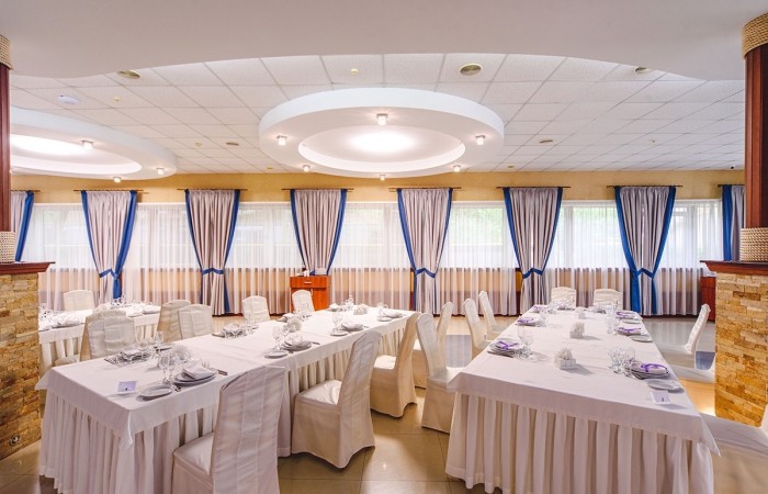 проведение банкетов, свадеб, дней рождений, закрытых мероприятий, презентаций и дегустаций, комплексное питание для гостей пансионата «Совиньон», кофе брейки, фуршеты, банкеты.