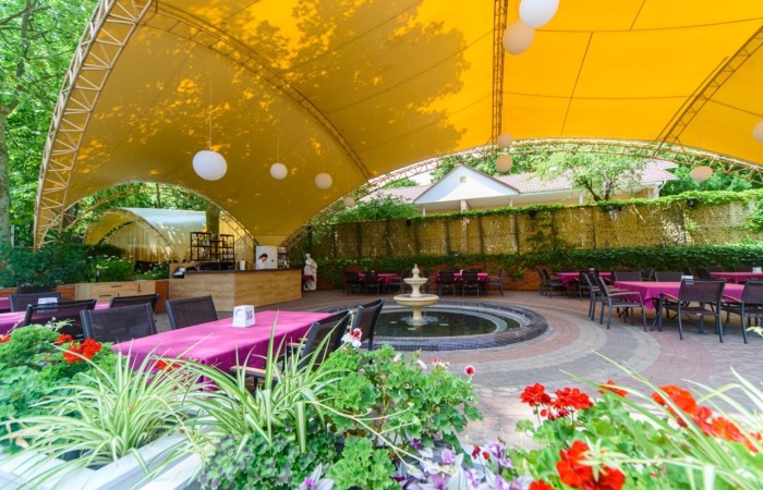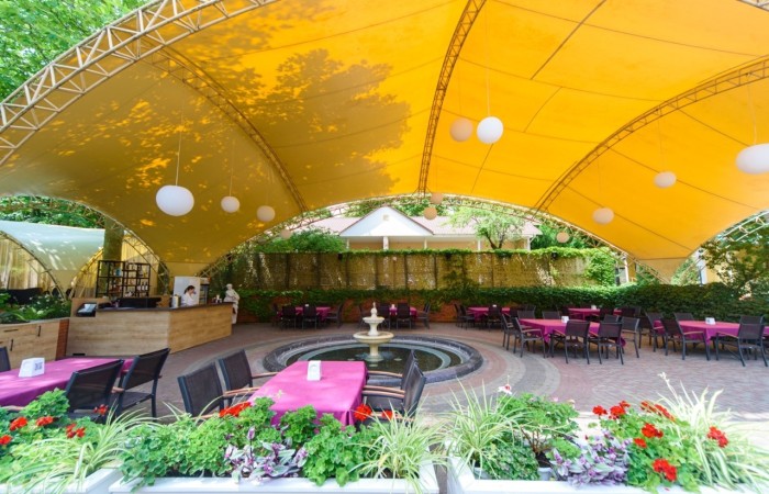 Открытая летняя площадка ресторана идеально подходит для мероприятий в летний период. Welcomedrinks, фуршеты, презентации, начало свадебных торжеств идеально проводить в атмосфере лета, на свежем воздухе, недалеко от моря, освежаясь брызгами фонтана! А живая музыка наполнит Ваш отдых бодрыми нотками.