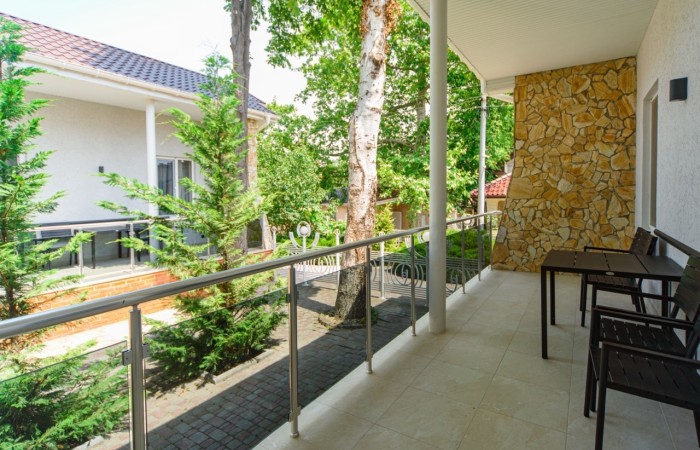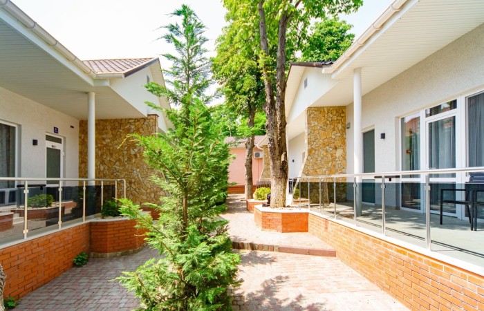 Кількість бунгало - 2, які дивляться один на одного і мають внутрішній дворик із зеленими насадженнями.