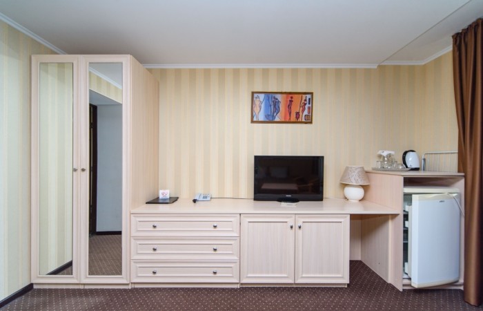 Двомісні номери категорії «Стандарт» – для цінувальників практичності та мінімалізма. Інтер’єр номерів суміщає в собі лаконічність, зручність та відсутність зайвого декору. Вони ідеальні для відпочинку пар, або ділових людей, що приїхали у відрядження.